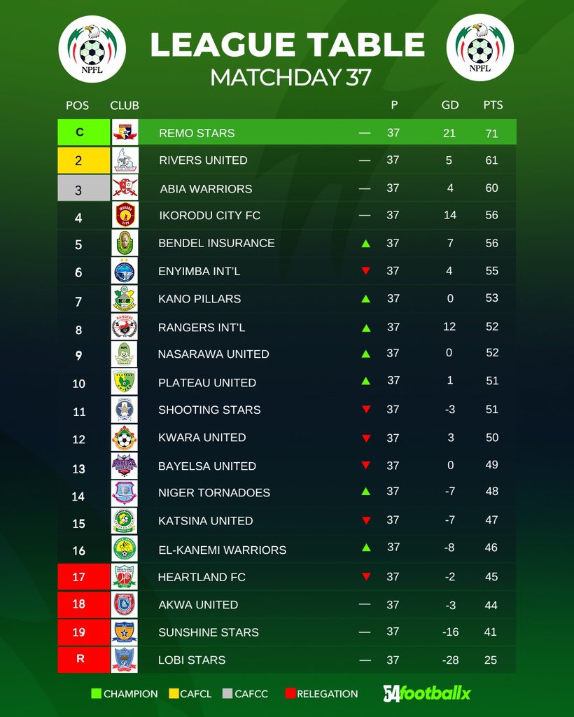- Remo Stars crowned champions of Nigeria after securing first-ever NPFL title win