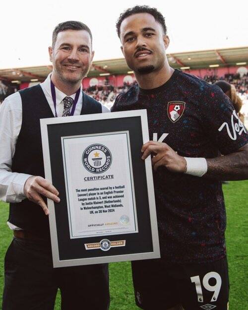 Justin Kluivert made Premier League history with a remarkable record-breaking performance and has been officially recognised by Guinness World Records for scoring the most penalties in a single Premier League match.