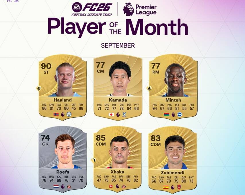 Tags: Erling Haaland, Daichi Kamada, Yankuba Minteh, Granit Xhaka, Martin Zubimendi, Robin Roefs, #MCFC, #CPFC, #BHAFC, September Premier League Player of the Month, #AFC, #PL, Premier League.