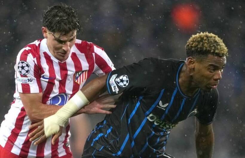 In the 52nd minute Club Brugge pulled a goal back through Onyedika before Nicolo Tresoldi made it 2-2 on the hour mark. With 11 minutes left Atletico went 3-2 ahead following an own goal by Joel Ordonez. Yet the drama was far from finished.