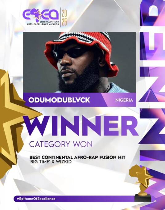 The winning song marks the first track from Odumodublvck’s 2025 album Industry Machine to earn formal recognition, further cementing the project’s growing influence across Africa.