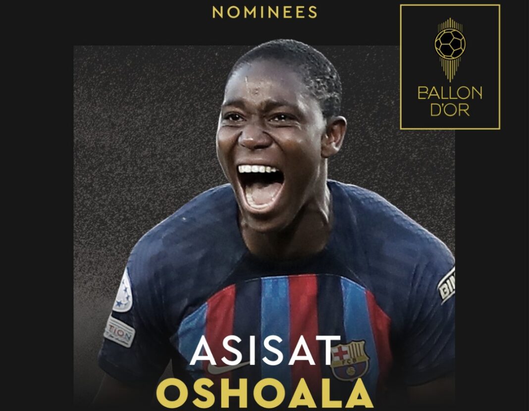 Super Falcons forward Asisat Oshoala has been nominated for the 2023 Women’s Ballon d’Or for the second successive time.