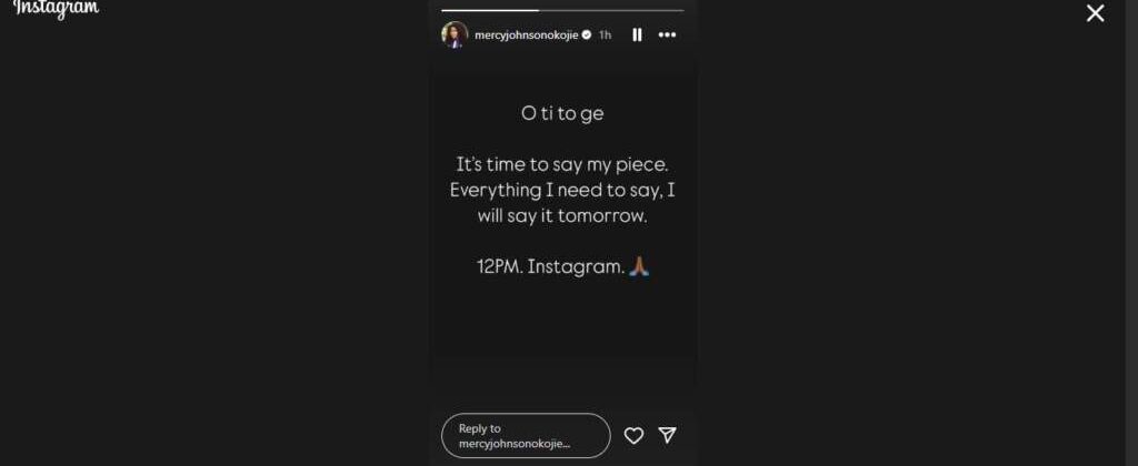 As the online spat continues to unfold, Mercy Johnson has finally spoken out. Although she did not directly address the claims or insults, she hinted at making a full statement soon.