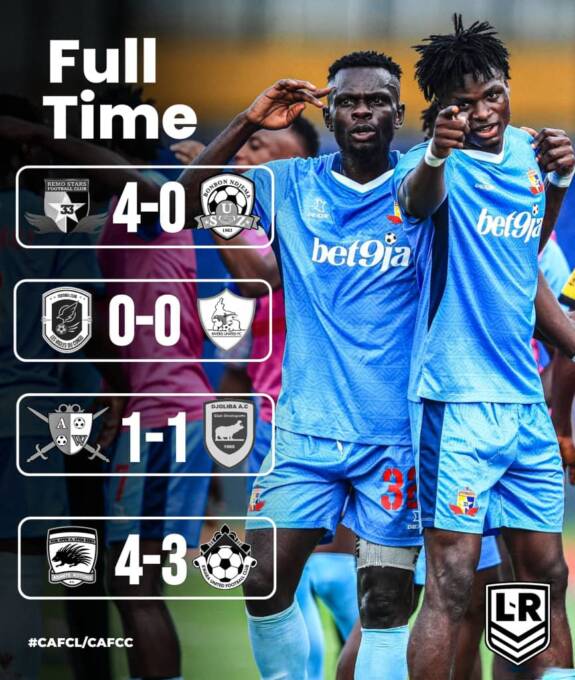 Tags: Remo Stars, Rivers United, CAF Champions League, CAF Confederation Cup, #CAFCL, #CAFCC, Kwara United, Abia Warriors, Remo Stars, #SkyBlueStars, Rivers United, FC Les Aigles du Congo, US Zilimadjou, Black Bulls, Asante Kotoko, Mamelodi Sundowns.