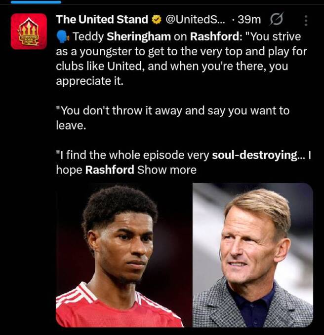 Sheringham based his view on recent numbers. Rashford scored 30 goals in 2022–2023. But in 2023–2024, he netted only 8 in 43 games.